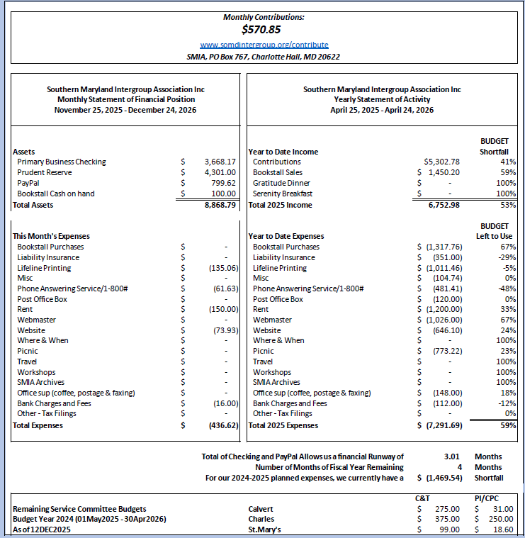 Southern Maryland Intergroup Association aids groups in carrying the A.A. message to the alcoholic who still suffers by: