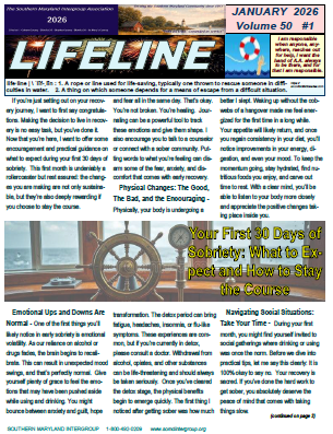 The LIFELINE is an informal, unofficial newsletter published by the membership of the Southern Maryland Intergroup Association, Inc.. Any opinions expressed are those of the editor or authors of submissions. They are not endorsed by SMIA, any group nor AA as a whole.