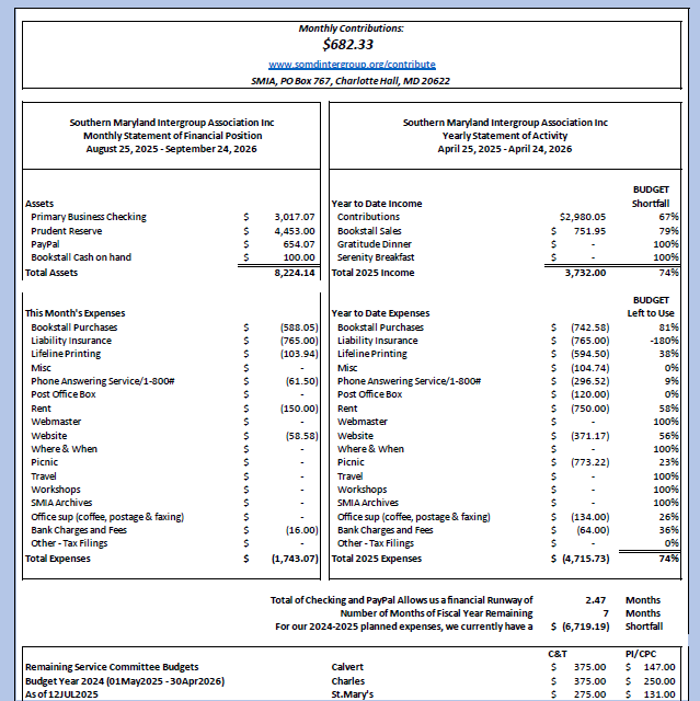 Jump to Treasurer's Report Jump to 2025 -2026 Budget and Budget Analysis