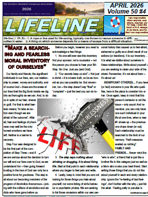 The LIFELINE is an informal, unofficial newsletter published by the membership of the Southern Maryland Intergroup Association, Inc.. Any opinions expressed are those of the editor or authors of submissions. They are not endorsed by SMIA, any group nor AA as a whole.